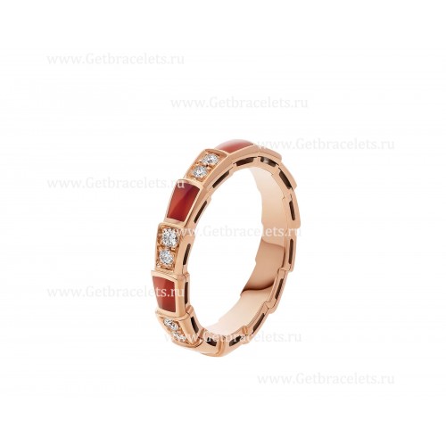 Bvlgari Small Serpenti Viper 18k Rose Gold Ring with Carnelian Elements and Pave Diamonds