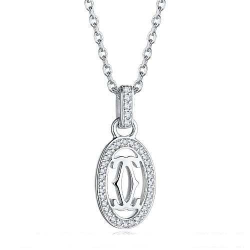 Product Name:CARTIER LOGO DOUBLE C NECKLACE IN WHITE GOLD WITH DIAMONDS