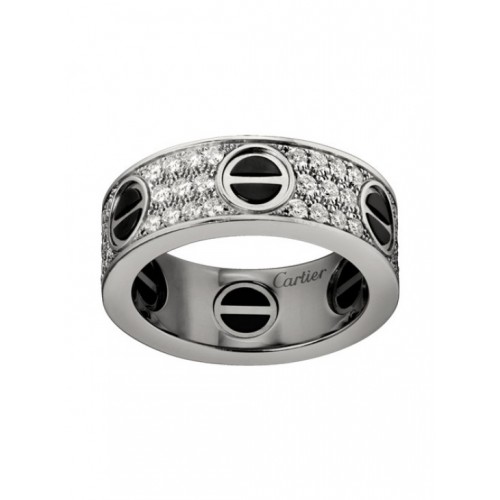 Cartier Love Ring 18K White Gold Black Ceramic Paved Diamonds