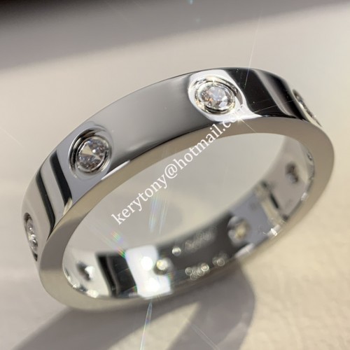 Product Name:Cartier Love Ring 18K White Gold Ring With 8 Diamonds B4050600 Material:316L Titanium Steel + 18K Gold Plating Color:White Gold Material Features:Never fade,can be wore under water