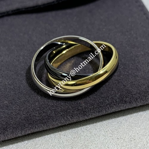 Product Name:Cartier Trinity Ring White Gold/Yellow Godd with Black Classic Ceramic Material:316L Titanium Steel + 18K Gold Plating Color:Yellow Gold/White Gold/Black Ceramic Material Features:Never fade,can be wore under water