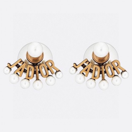 Dior JAdior Antique Gold-finish Metal White Resin JAdior Signature Stud Earrings Price