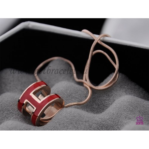 Hermes 3D Pop “H” logo Snake Bone Red Necklace in Pink Gold