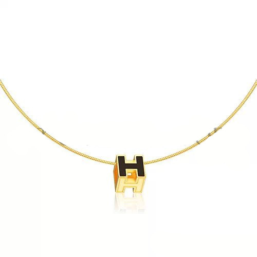 Hermes Cage dH Necklace Black in Lacquer Yellow Gold