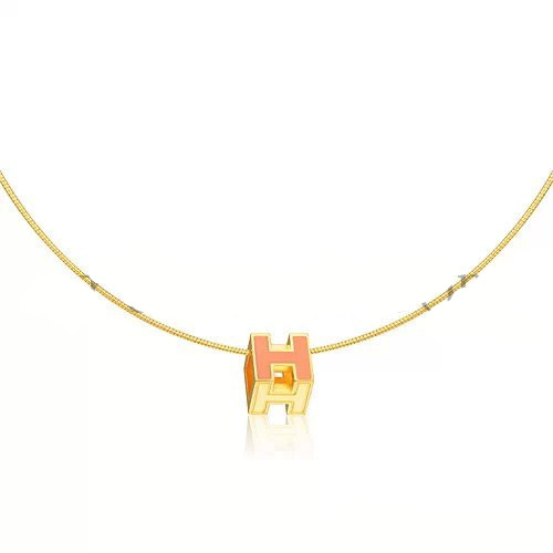 Hermes Cage dH Necklace Red in Lacquer Yellow Gold