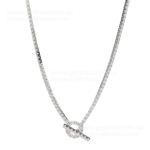 Hermes Finesse Link Necklace White Gold With Pave Diamonds