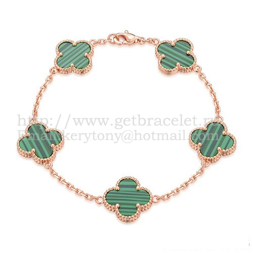 Van Cleef Arpels Alhambra Bracelet 5 Motifs Pink Gold With Malachite Mother Of Pearl