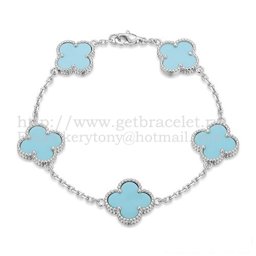 • Van Cleef Arpels Alhambra Bracelet 5 Motifs White Gold With Turquoise Mother Of Pearl