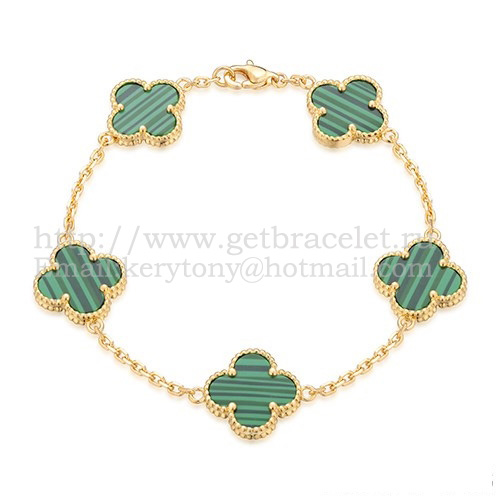 Van Cleef Arpels Alhambra Bracelet 5 Motifs Yellow Gold With Malachite Mother Of Pearl