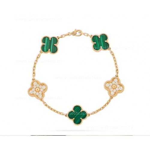 Van Cleef Arpels Alhambra Bracelet 5 motifs With Diamonds and Malachite
