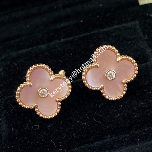Van Cleef Arpels Alhambra Earring Rose Gold With Pink Mother-of-Pearl and Diamonds