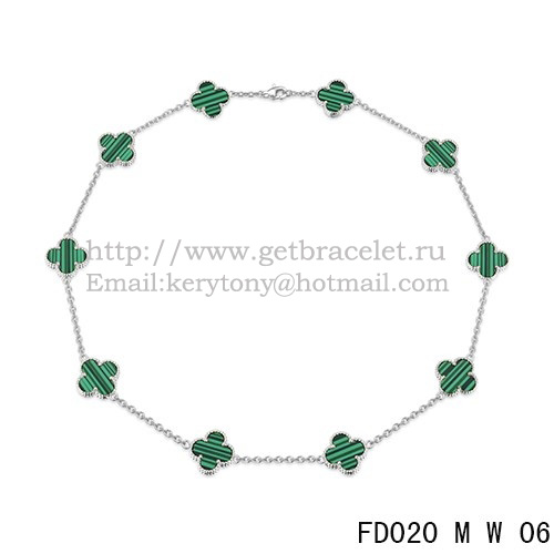 Van Cleef Arpels Alhambra Necklace White Gold 10 Motifs Malachite Mother Of Pearl 45cm