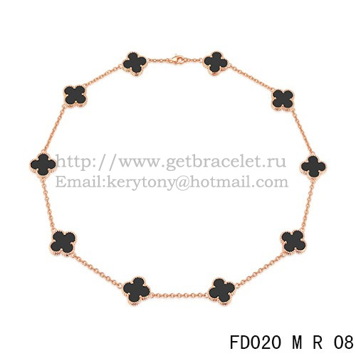 Van Cleef Arpels Alhambra Necklace Pink Gold 10 Motifs Black Agate Mother of Pearl 45cm