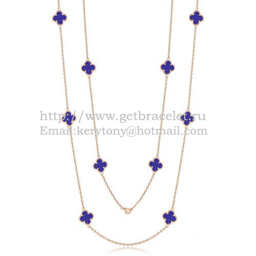Van Cleef Arpels Alhambra Necklace Pink Gold 10 Motifs With Lapis Stone Mother Of Pearl