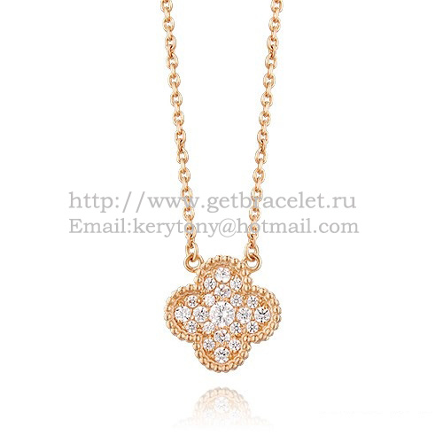 Van Cleef Arpels Alhambra Pendant Pink Gold With Diamonds