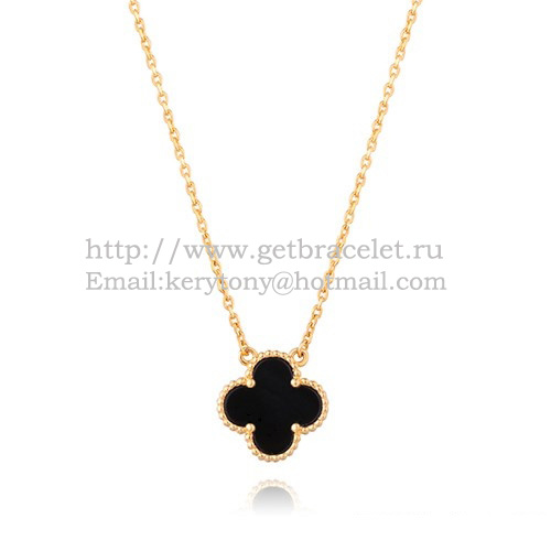 Van Cleef Arpels Alhambra Pendant Yellow Gold With Black Agate Mother Of Pearl 15mm