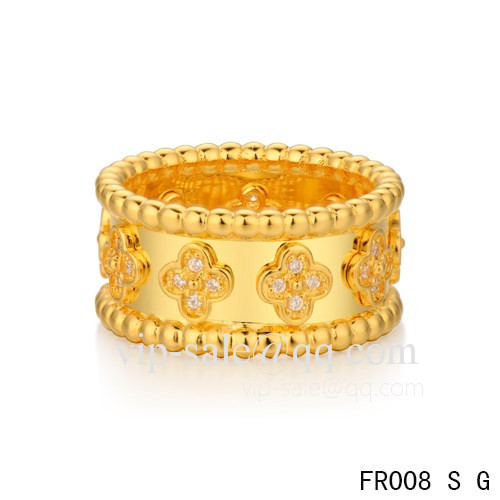 Van Cleef Arpels Clover Ring In Yellow With Round Diamonds