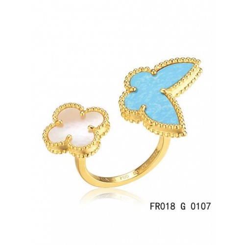 Van Cleef Arpels Luck Alhambra Between The Finger Ring Yellow Gold Turquoise With Mother Of Pearl