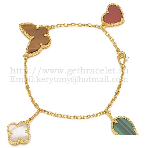 Van Cleef Arpels Lucky Alhambra 4 Motifs Bracelet Yellow Gold With Stone Combination 003