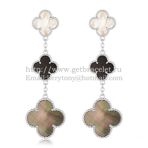 Van Cleef Arpels Magic Alhambra 3 Motifs Earrings White Gold With Stone Combination
