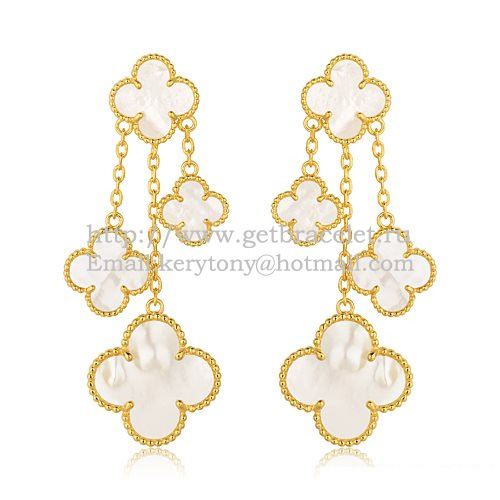Van Cleef Arpels Magic Alhambra 4 Motifs Earrings Yellow Gold With White Mother Of Pearl