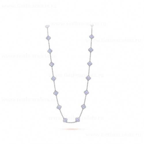 Van Cleef Arpels Magic Alhambra Long Necklace 20 Motif Pendant White Gold Chalcedony