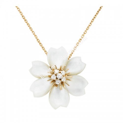 • Van Cleef Arpels Rose de Noel Clip Pendant Yellow Gold With Diamond and Mother-of-pearl In Canada