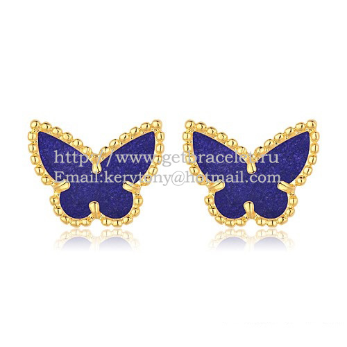 Van Cleef Arpels Sweet Alhambra Butterfly Earrings Yellow Gold With Lapis Stone Mother Of Pearl