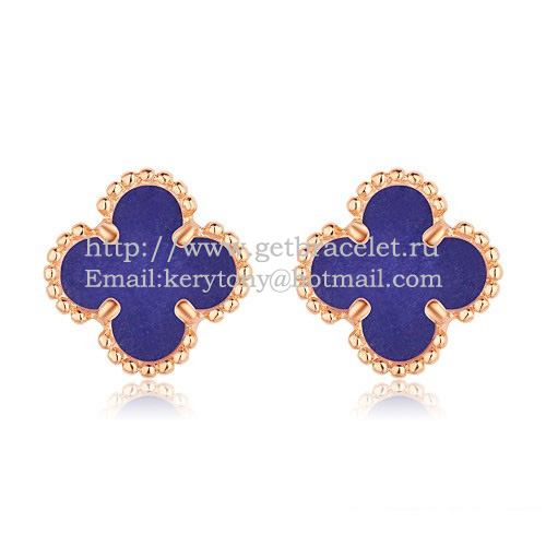 Van Cleef Arpels Sweet Alhambra Earrings Pink Gold With Lapis Stone Mother Of Pearl