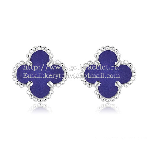 Van Cleef Arpels Sweet Alhambra Earrings White Gold With Lapis Stone Mother Of Pearl