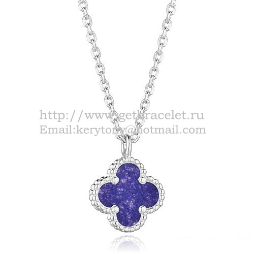 Van Cleef Arpels Sweet Alhambra Pendant White Gold With Lapis Stone Mother Of Pearl 9mm