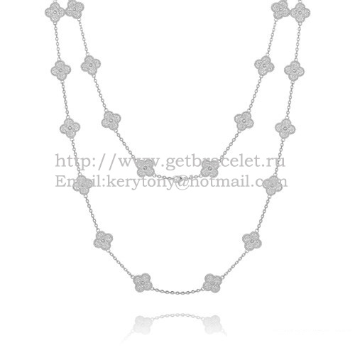 Van Cleef Arpels Alhambra Long Necklace White Gold 20 Motifs
