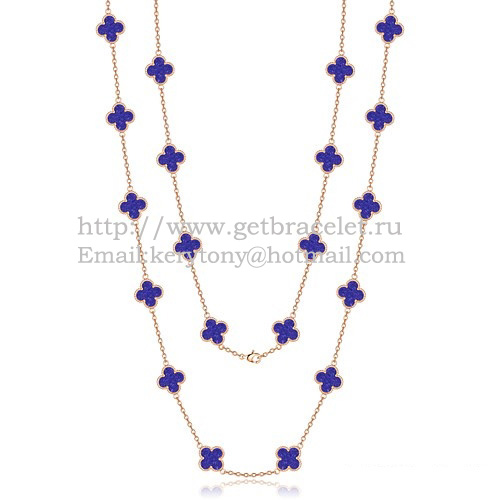 Van Cleef Arpels Alhambra Necklace Pink Gold 20 Motifs With Lapis Stone Mother Of Pearl