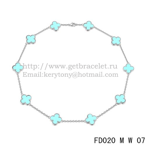 Van Cleef Arpels Alhambra Necklace White Gold 10 Motifs Turquoise Mother of Pearl 45cm
