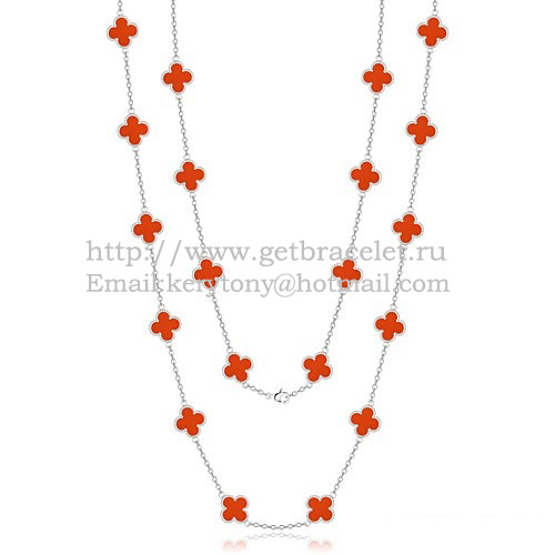 Van Cleef Arpels Alhambra Necklace White Gold 20 Motifs With Carnelian Mother Of Pearl
