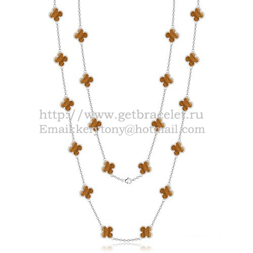 Van Cleef Arpels Alhambra Necklace White Gold 20 Motifs With Tigers Eye Mother Of Pearl