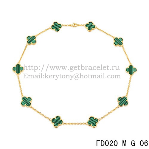 Van Cleef Arpels Alhambra Necklace Yellow Gold 10 Motifs Malachite Mother Of Pearl 45cm
