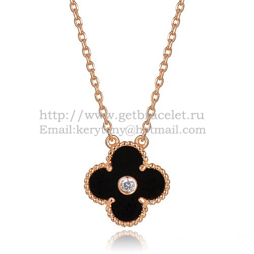 Van Cleef Arpels Alhambra Pendant Pink Gold With Black Agate Mother Of Pearl Round Diamonds