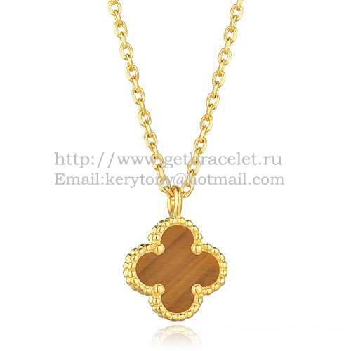 Van Cleef Arpels Sweet Alhambra Pendant Yellow Gold With Tigers Eye Mother Of Pearl 9mm